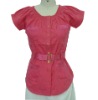 Top,Belt blouse,Satin blouse elastic on front and sleeves, contrast satin at belt and four patch pockets, front opening with buttons. 1 ) Fabric: cotton spandex 2 )Colours and sizes could be made as per buyer' request Welcome your own designs and samples